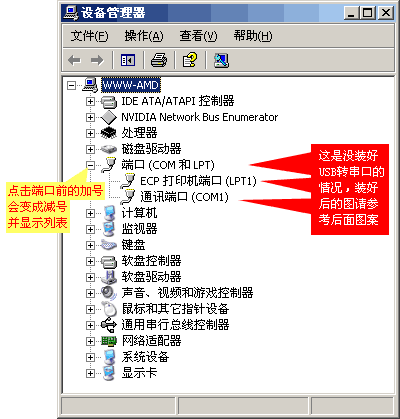 第二部分:假如您已经装好USB转串口驱动程序,但是端口号数字太大,软件只能用很小的端口号,怎样改小?